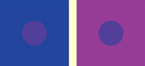 two circles are the same colour, even though the one on the blue background seems