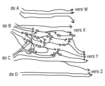to regions X and Y, but not W or Z. Also, region C communicates with region Y