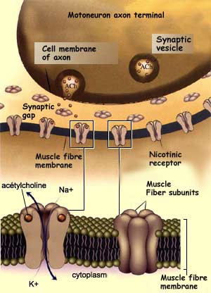On the opposite side of the synapse, this acetylcholine
