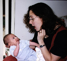 cause the baby to stick out her own tongue. |